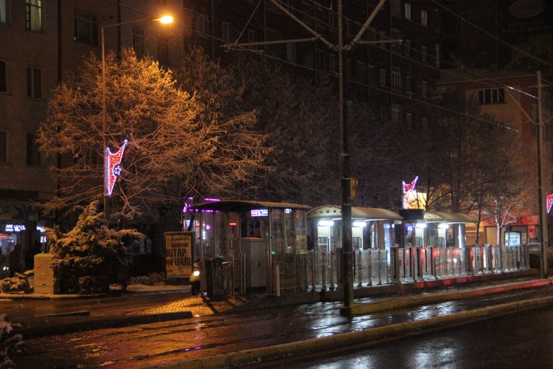 Eskişehir’de, kent merkezine mevsimin ilk kar yağışıyla birlikte üniversite öğrencileri sokağa döküldü. Akşam saatlerinde başlayan yoğun kar yağışında gençler doyasıya kartopu savaşı yaptı.