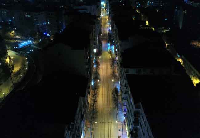 Yayınlanan genelge ile ilan edilen sokağa çıkma yasağının ikinci gecesinde Eskişehir sokakları havadan görüntülendi.