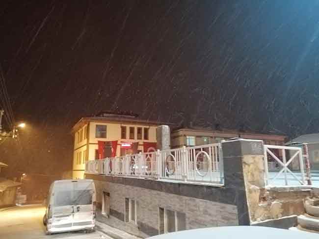 Son iki gündür yağan karla yeniden beyaza bürünen Mihalıççık ilçesinde dün gece de yağış devam etti.