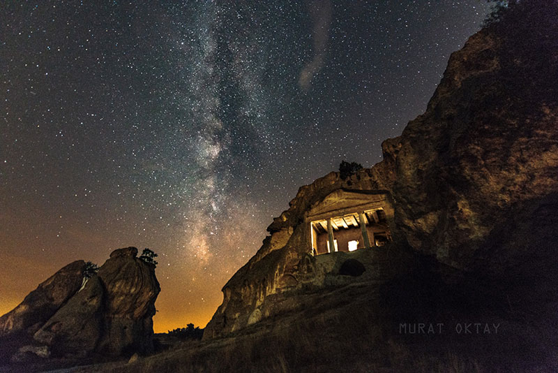 Eskişehirli astrofotoğrafçı Murat Oktay zaman atlamalı fotoğrafçılık tekniğini (timelapse) kullanarak Gerdekkaya anıtı ve Yazılıkaya anıtını samanyolu ile aynı karede buluşturdu.