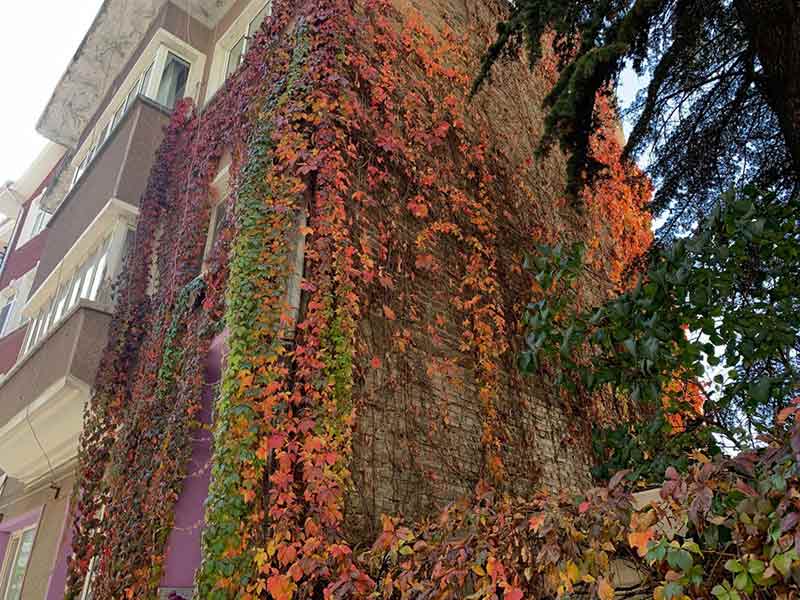 Eskişehir'in Odunpazarı İlçesi Yalaman Sokak'ta bulunan ve binaların duvarlarını kaplayan sarmaşıklar oradan geçenlerin dikkatini çekiyor.