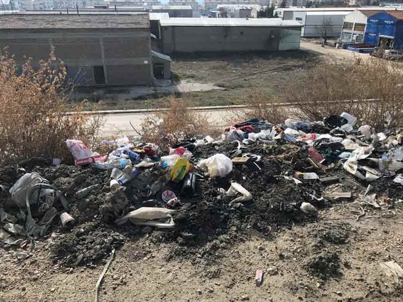 Eskişehir’de Baksan Sanayi Sitesi’nde yol kenarındaki yeşil alana atılan çöp ve moloz birikintileri çevre kirliliğine neden oluyor.