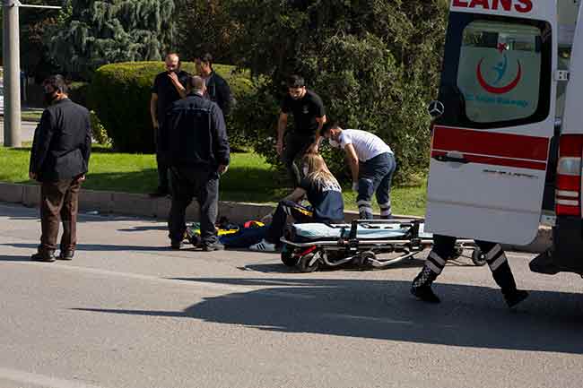 Atatürk Bulvarı'nın Dede Korkut Parkı yakınındaki kavşak noktasında meydana gelen kazada, üç tekerlekli motosiklet ile bir otomobil çarpıştı.