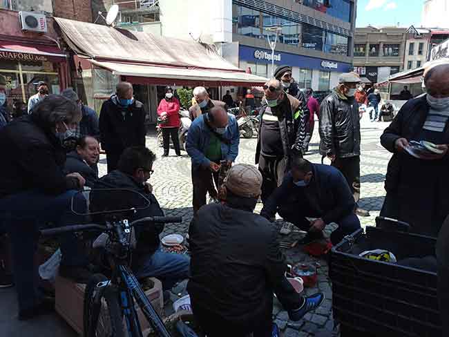 Eskişehir’de sokak ortasında kurulan ikinci el eşya tezgâhında maskesiz satıcılar ve sosyal mesafe kuralına uymayan müşteriler dikkat çekti.