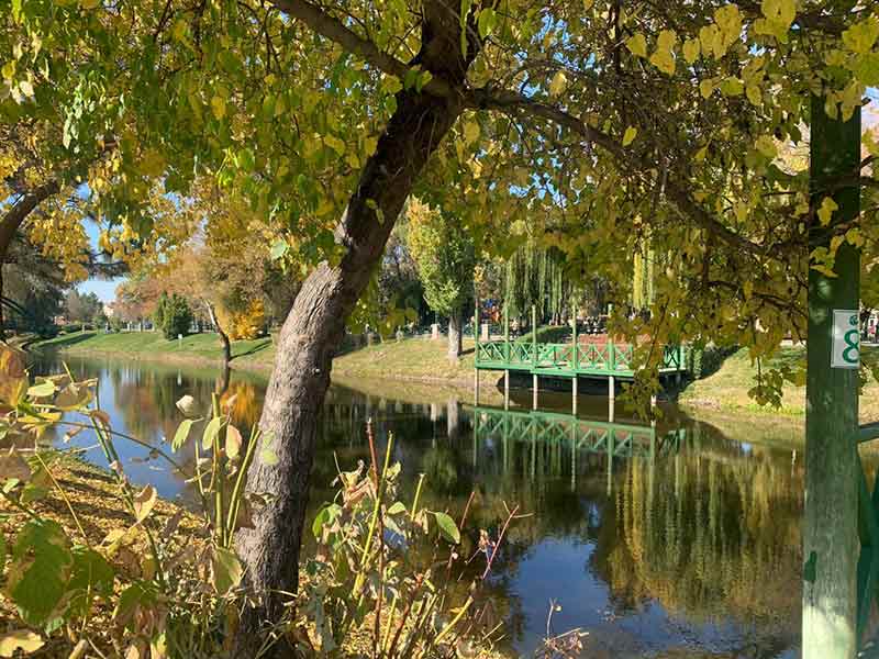 Eskişehir’de sonbaharın gelişiyle sarının tonlarına bürünen ağaçlara ev sahipliği yapan Kanlıkavak Parkı, şehrin gürültüsünden sıkılan vatandaşların nefes alabileceği bir alan oluşturuyor.