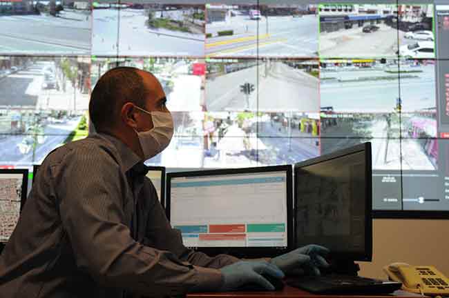 Ekran başında bulunan emniyet personeli, kent genelinde konumlandırılan yüzlerce kameradan bu kısıtlama sürecini yakından takip ediyor.