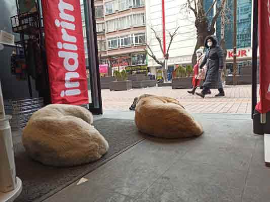 Kentin en işlek caddelerinden olan Hamamyolu Caddesi üzerinde bulunan bir kozmetik mağazası soğukta kalan sokak hayvanlarını içeride barındırıyor.