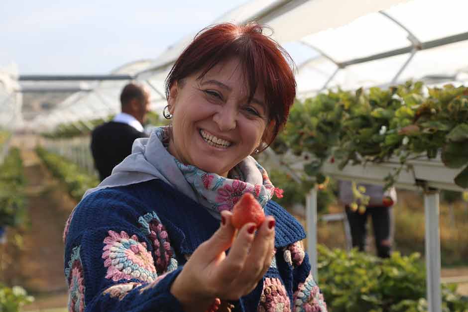 Eskişehir-Kütahya karayolunun 29. kilometresinde bulunan işletmedeki makas ve hasır sepetleri alarak dalından çilek toplayan müşteriler, yediklerinin değil topladıklarının parasını ödüyor.