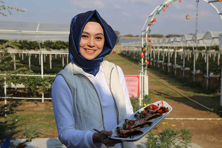 Eskişehir-Kütahya karayolunun 29. kilometresinde bulunan işletmedeki makas ve hasır sepetleri alarak dalından çilek toplayan müşteriler, yediklerinin değil topladıklarının parasını ödüyor.