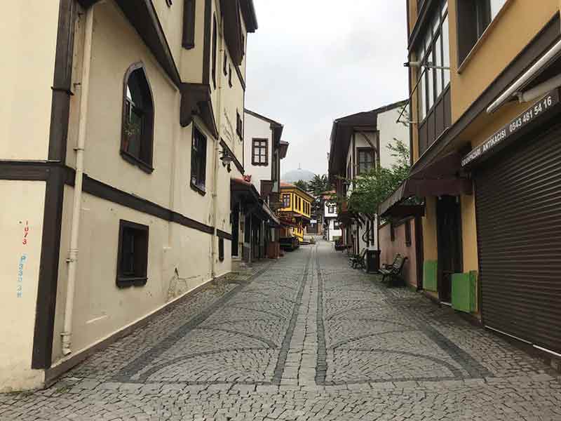 Eskişehir’de Ramazan Bayramı’nın 3’üncü gününde etkisini gösteren bulutlu ve yağışlı hava, tarihi evleriyle meşhur Odunpazarı Bölgesi’ni sessizliğe bürüdü. Boş kalan tarihi sokaklar dron ile havadan görüntülendi.