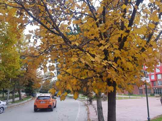 Eskişehir Anadolu Üniversitesi kampüsünde sonbaharın gelmesiyle birlikte sararmış ve yere dökülen sarı yapraklar kartpostallık görüntüler oluştururken, Covid-19 nedeniyle kampüste öğrencilerin bulunmaması bu güzelliğini tatsız bıraktı.