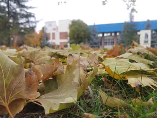 Eskişehir Anadolu Üniversitesi kampüsünde sonbaharın gelmesiyle birlikte sararmış ve yere dökülen sarı yapraklar kartpostallık görüntüler oluştururken, Covid-19 nedeniyle kampüste öğrencilerin bulunmaması bu güzelliğini tatsız bıraktı.