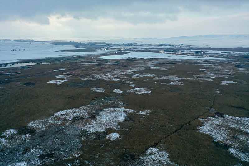 "Doğal Sit-Nitelikli Doğal Koruma Alanı" olarak tescil edilen, yüzlerce kuş türüne konaklama, beslenme ve üreme olanağı sağlayan Eskişehir'deki Balıkdamı, kar yağışlarıyla beyaza büründü
