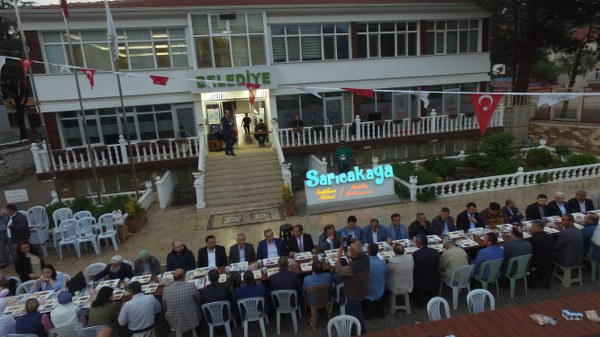 Sarıcakaya İlçe Belediyesi tarafından düzenlenen iftar programı öncesi yaşanan fırtına ve dolu yağışı, hazırlık yapılan alandaki masa, sandalye ve diğer malzemeleri kısa sürede tahrip ederken, daha sonra el birliği ile yapılan çalışmalar sonucu hep birlikte iftar açıldı.