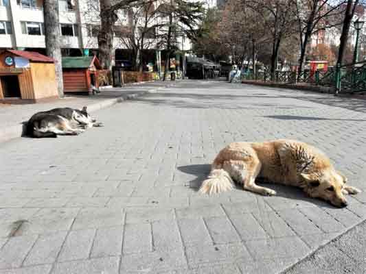 Eskişehir’de sokağa çıkma kısıtlamasının yaşandığı hafta sonunda güneşli havanın tadını sokak hayvanları çıkardı.