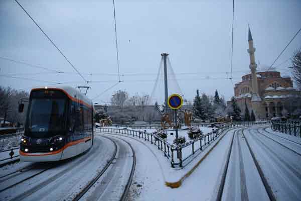 Beyaza bürünen Porsuk Çayı çevresi ile cadde ve sokaklarda güzel görüntüler oluştu.
