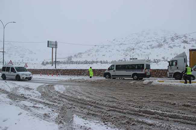 Kenti yeniden beyaza bürüyen kar, karayolu ulaşımında da kısmi olarak olumsuzluğa neden oldu.