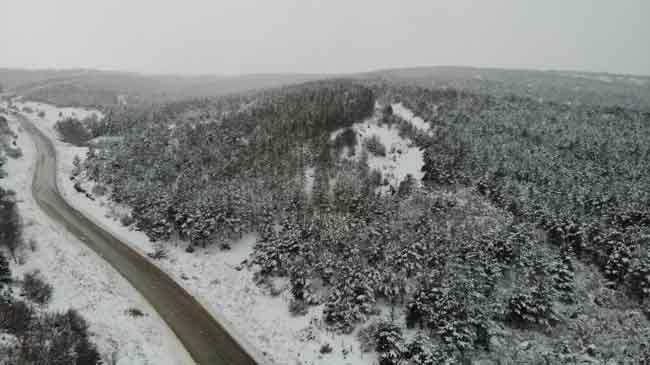 Ağaçlar arasından devam eden araç yolu ve kış görüntülerinin oluşturduğu manzara göz doldurdu.
