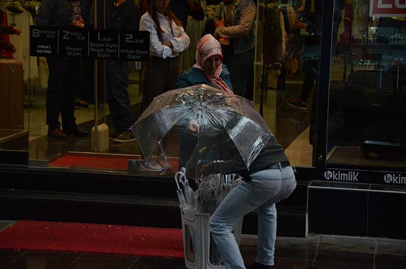 Eskişehir'de, öğle saatlerinde başlayan kısa süreli yağmur vatandaşlara zor anlar yaşattı.