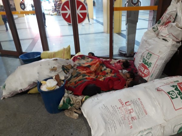 Büyük torbalarda bulunan eşyaları, kovalar, battaniyeler ve çeşitli gereçleriyle otogara gelen aile, burada eşyalarını koyacak müsait bir yer bulduktan sonra beklemeye başladı. Otobüsün hareket saatinin geç olmasında dolayı 4 çocukları bulunan ailede uykusuzluk baş gösterdi.