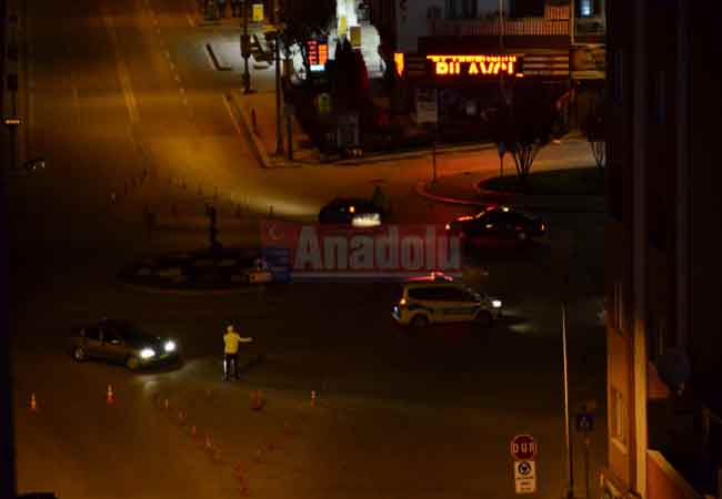 Eskişehir'de sokağa çıkma yasağının açıklamasının ardından Trafik polisleri kentin işlek caddelerindeki kavşak noktalarında görev alarak araçların yoğunluğunu azalttı. Ekiplerin araçların ana caddelere girişine izin vermediği görüldü. (Haber: Kaan Özcan / Anadolu Gazetesi)