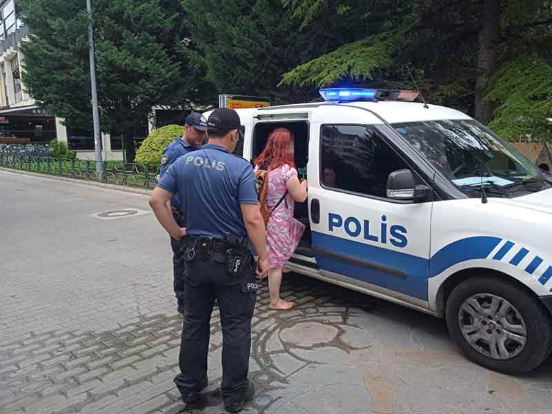 Olay yerindeki eşyalarını toplayarak şarkılar söyleyen kadın, polis ekipleri tarafından ifadesi alınmak üzere karakola götürüldü.