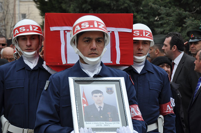 Afrin’de bölücü terör örgütü ile girilen çatışma sonucunda şehit olan Jandarma Uzman Çavuş Recep Çetin, Eskişehir'de son yolculuğuna uğurlandı.