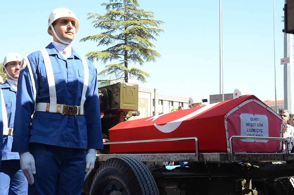 Batman'ın Gercüş ilçesinde PKK'lı teröristlerin önceden yola tuzakladıkları el yapımı patlayıcının zırhlı aracın geçişi sırasında infilak ettirilmesi sonucu meydana gelen patlamada şehit olan Eskişehirli Jandarma Uzman Çavuş Neşet Gök, sevenlerinin gözyaşları arasında son yolculuğuna uğurlandı. Şehidin 7 yaşındaki kardeşi Batuhan, cenaze törenine askeri kamuflaj giyerek katıldı
