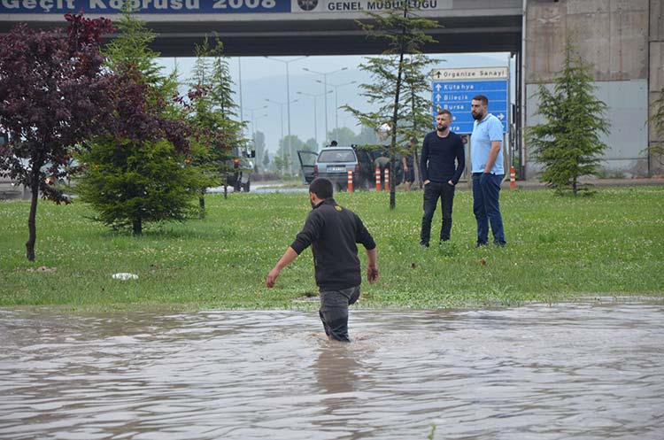 Eskişehir’de akşam saatlerinde etkili olan sağanak yağış nedeniyle şehrin bazı noktalarında göletler oluştu, sürücüler yolda mahsur kaldı.