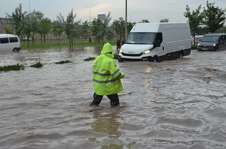 Eskişehir’de akşam saatlerinde etkili olan sağanak yağış nedeniyle şehrin bazı noktalarında göletler oluştu, sürücüler yolda mahsur kaldı.