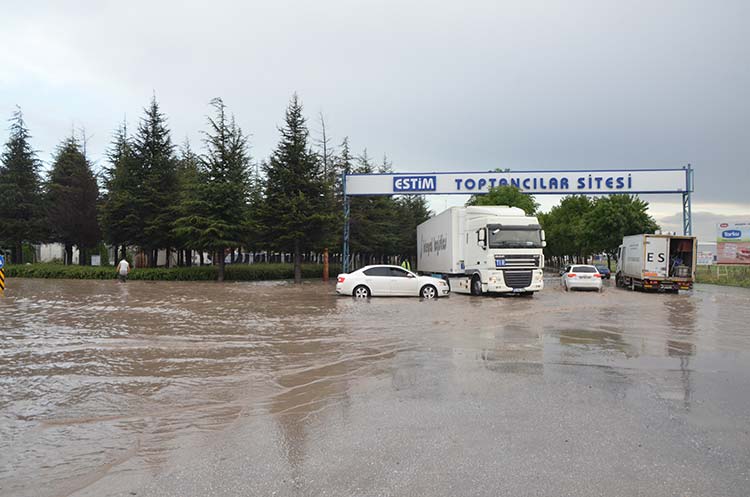 Eskişehir’de akşam saatlerinde etkili olan sağanak yağış nedeniyle şehrin bazı noktalarında göletler oluştu, sürücüler yolda mahsur kaldı.