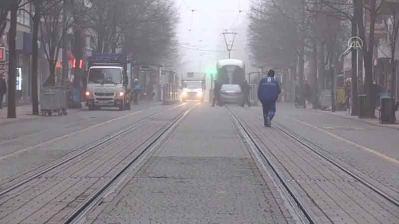 Eskişehir'de yoğun sis nedeniyle görüş mesafesi 50 metrenin altına düşüyor.