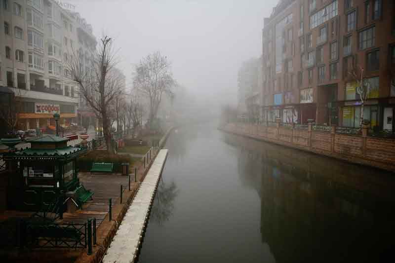 Eskişehir'de yoğun sis nedeniyle görüş mesafesi 50 metrenin altına düşüyor.