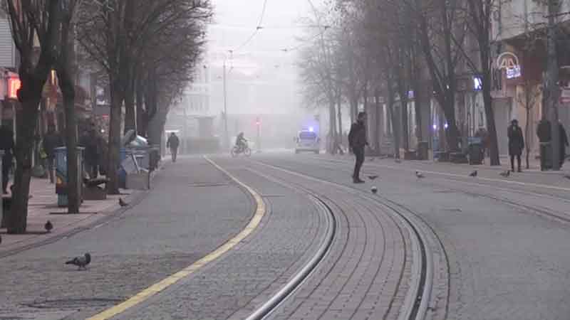 Eskişehir'de yoğun sis nedeniyle görüş mesafesi 50 metrenin altına düşüyor.