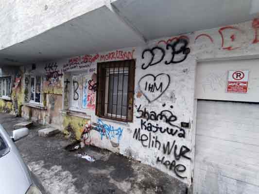 Şehrin en merkezi yerlerinden İsmet İnönü-1 Caddesi’nin yakınındaki Yalın Sokak’ta bulunan 2 binanın duvarlarına kimliği belirsiz kişiler tarafından sprey boyalarla yazılar yazıldı.