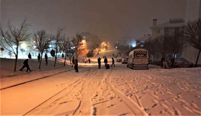 Eskişehir’de akşam saatlerinde etkili olan kar yağışı sonrasında sokağa çıkma kısıtlamasına rağmen kendilerini dışarıya atan vatandaşlar uzun zaman sonra doyasıya eğlendi.