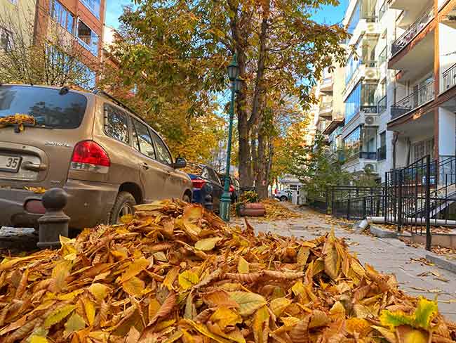 Binlerce yaprağın sokaklara dökülmesiyle kartpostallık görüntülerin ortaya çıktığı Eskişehir’de eşsiz manzaralar oluştu.