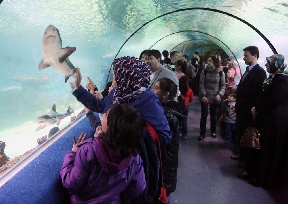 ESKİŞEHİR'de, Büyükşehir Belediyesi ile ETİ Gıda şirketinin işbirliğiyle kurulan 'Sualtı Dünyası' adlı dev akvaryum, ziyaretçi akınına uğruyor.