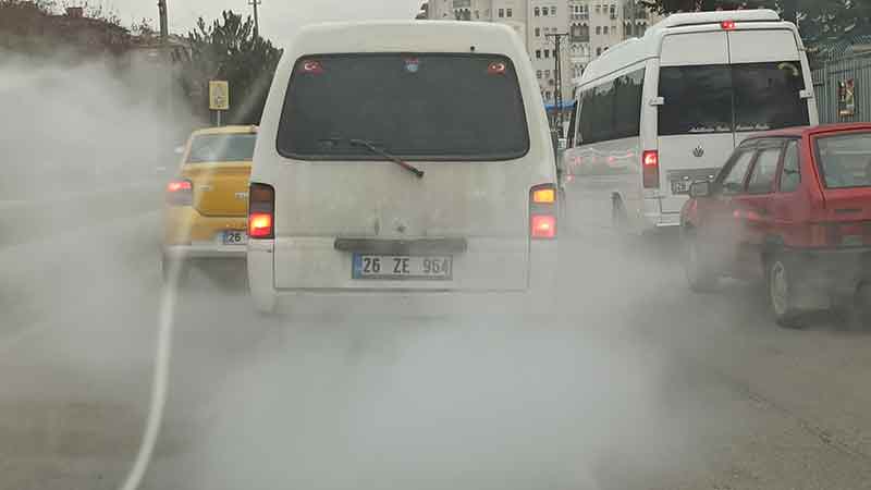 - Eskişehir’de egzozundan yoğun duman yayarak trafikte ilerleyen minibüs, diğer araçların adeta görüş mesafesini düşürdü.
