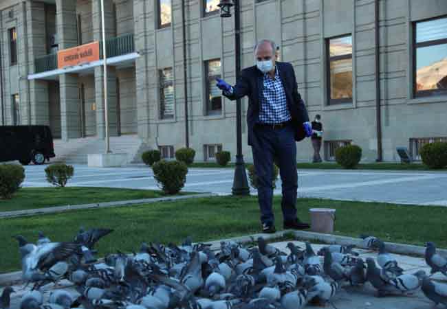 Eskişehir Valisi Özdemir Çakacak, yeni tip koronavirüsle (Kovid-19) mücadele kapsamında uygulanan 48 saatlik sokağa çıkma yasağında, elleriyle sokak hayvanlarını besledi.