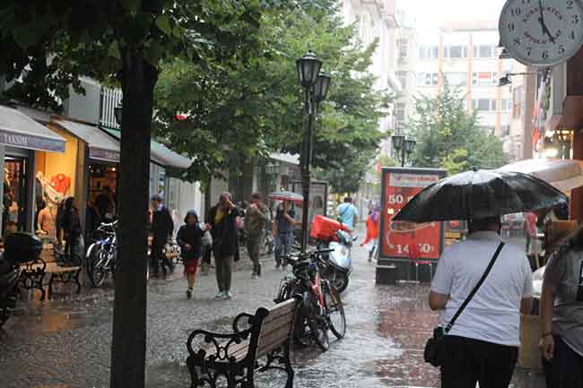Yaklaşık 15 dakika boyunca devam eden yağmur bina oluklarını suyla doldururken caddelerde ve alt geçitlerde oluşan birikintiler vatandaşların ulaşım sıkıntısı yaşamasına neden oldu.
