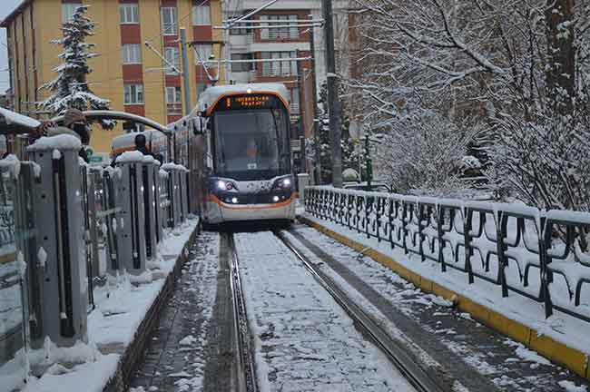 Eskişehir’de yeniden etkili olan soğuk havanın ardından dün akşam saatlerinde başlayan ve halen devam eden kar yağışı şehri yeniden beyaza bürüdü.