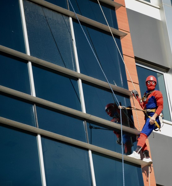 Eskişehir'de Örümcek Adam kostümüyle yaklaşık 5 yıldır yüksek katlı binaların dış cephe temizliği yapan ve tabelalarını asan Tamer Uysal, Mehmetçiğe destek amacıyla bir apartmanın dış cephesinde Türk bayrağı açtı, asker selamı verdi