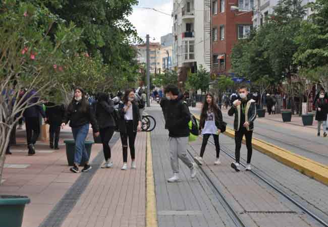 Koronavirüs nedeniyle sokağa çıkma kısıtlaması bulunan 15-20 yaş grubu gençler, bugün 11.00-15.00 saatlerinde bir kez daha dışarı çıktı. (Haber ve fotoğraflar: Hilal Köver)