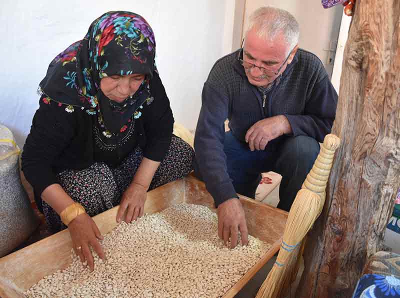 Ata tohumlarını eken Yıldırım, aldığı üründen ayırdığı bir miktar fasulyeyi gelecek nesillere ulaşması için özenle saklıyor.