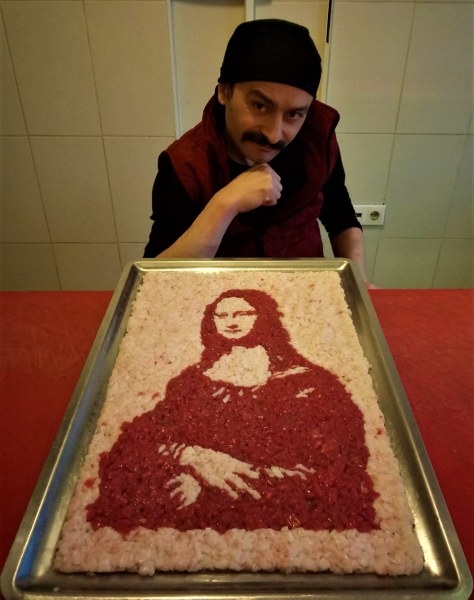 Eskişehir’de kasaplık yapan Ali Özyörük, 16. yüzyılda Leonardo da Vinci’nin sfumato tekniği ile yağlı boya kullanarak yaptığı ünlü Mona Lisa tablosunu et ve yağdan resmetti.
