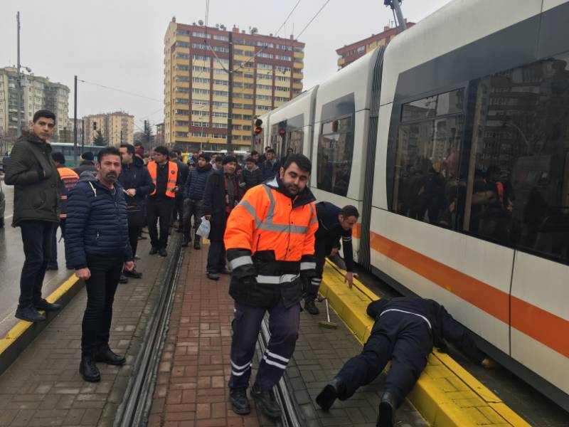 Eskişehir'de tramvayın altına giren kedi uzun uğraşlar sonrasında çıkartılabildi