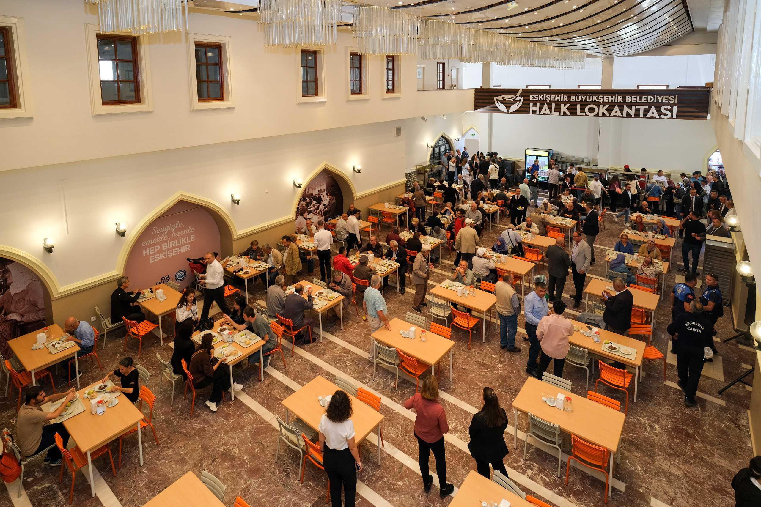 Eskişehir Büyükşehir Belediye Başkanı Ayşe Ünlüce’nin, seçim vaatlerinden biri olan Halk Lokantası bugün hizmete açıldı. 4 kap yemeğin 65 TL’ye sunulduğu Halk Lokantası’nın ilk gününde vatandaşlar yoğun ilgi gösterdi. Yemek standının arkasına geçen Başkan Ünlüce, vatandaşlara yemek servis etti.