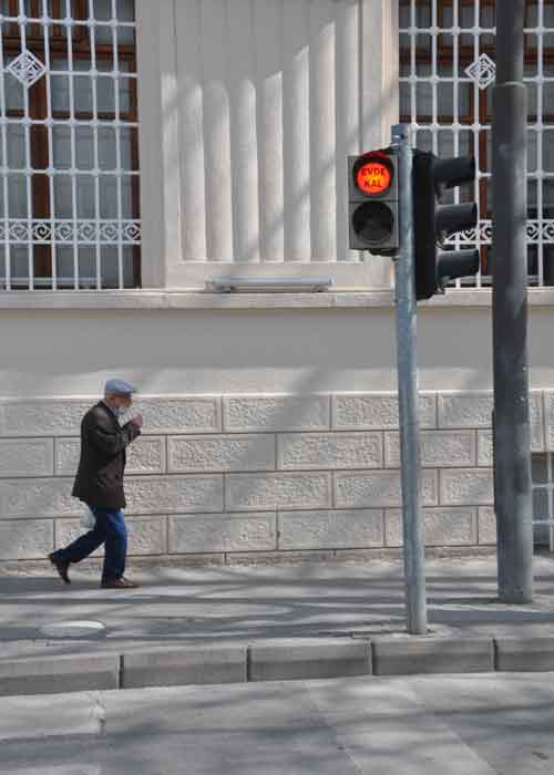 Eskişehir Büyükşehir Belediyesi tarafından hayata geçirilen uygulama ile yayalar için yanan kırmızı trafik ışığına ‘Evde kal’ ibaresi yerleştirildi.