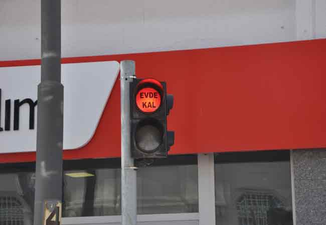 Sadece yayalar için yanan kırmızı ışıklara yerleştirilen yazılarla bir kez daha ‘Evde kal’ çağrısı yapılmış oldu. Öte yandan uygulama Türkiye’nin bazı farklı illerinde de hayata geçirildi.
